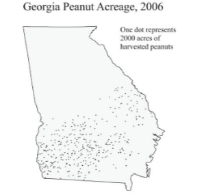 Dot map: shows variations in spatial density