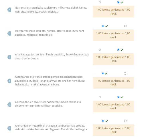 | Eusko jaurlaritza | 1936ko urrian | Gernikan | Errepublikako bandoa (Madriletik Azañak), Euskal Gizartea. | Euskaldunak gure autonomia eta eskubideak lortu zituzten. Euskaldunok kudeatzea beraien kontuak eta eusko gudarostea sortu zuten. |