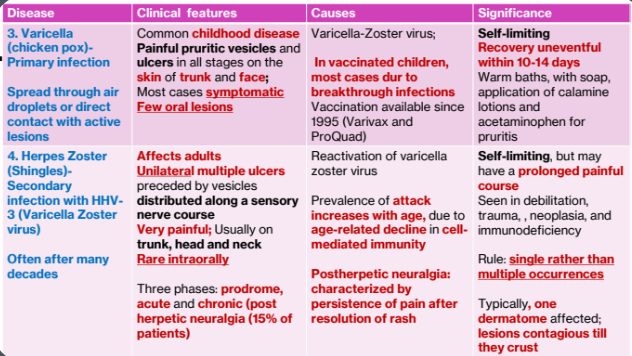 2. Varicella (chicken pox)-Primary infection, Herpes Zoster (Shingles)-Secondary infection, HHV-3 (Varicella Zoster virus)