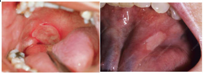 clinical appearance may also include a white or red patch or mass