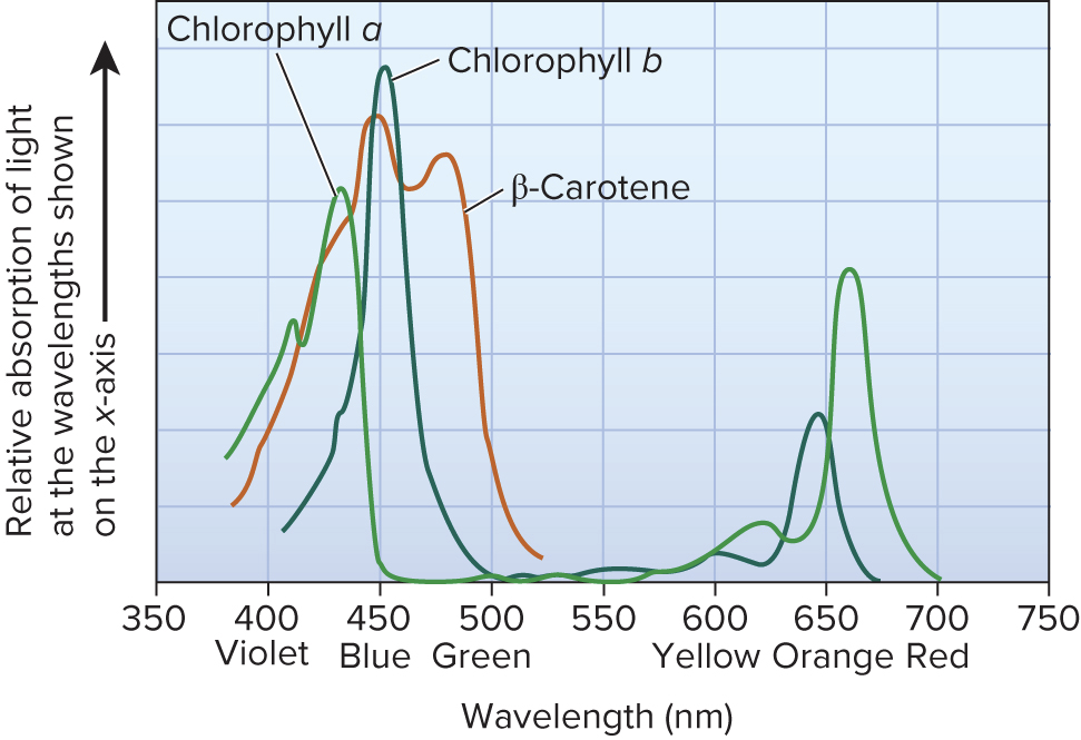 Plants and green algae contain various pigments that allow them to absorb light across a broad spectrum: