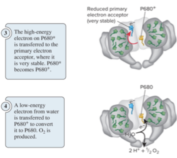 Unlike other pigments, P680, when excited (P680), releases a high-energy electron, becoming oxidized (P680 ^+ ). P680* → P680+ + e-