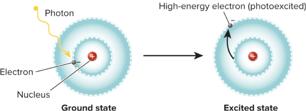 Upon absorbing energy, an electron enters an excited state, which is typically unstable.