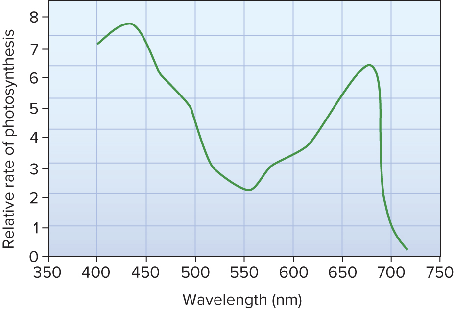 An action spectrum illustrates the rate of photosynthesis by a whole plant across various wavelengths of light.