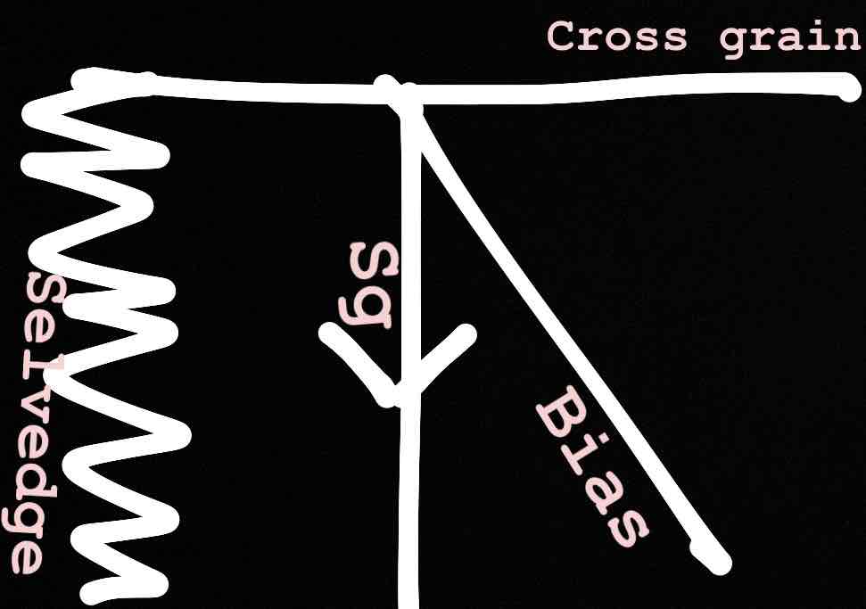 Cross grain: perpendicular to the selvedge or the sg