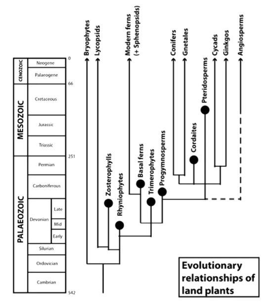 plant evolution is affected by reproductive novelty, each innovation gets an adaptive radiation, allow a new group to dominate the planet