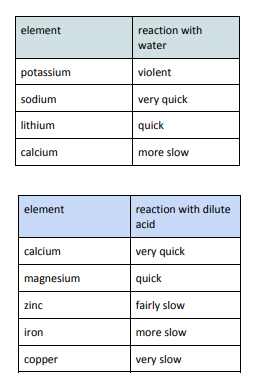 the reactivity series arranges the metals in order of their tendency to form a positive ion (reactivity)