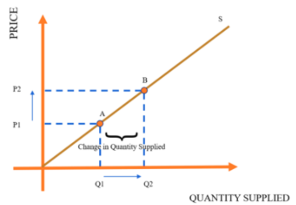 It is referred to as a change in quantity supplied since the term “supply” refers to the entire supply curve, while the term “quantity supplied” refers to a point on the supply curve