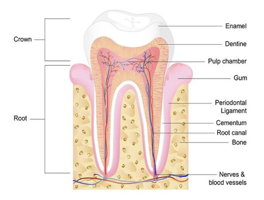 pulp: living part of the tooth