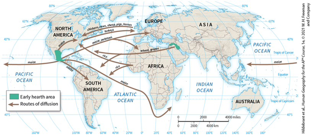 The diffusion of crops, animals, and agricultural innovations continues today.