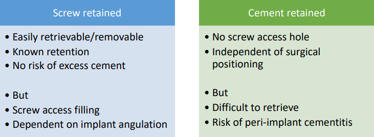 • Removable full arch may be required due to significant loss of soft tissue but comes with increasing maintenance due to loss of retention