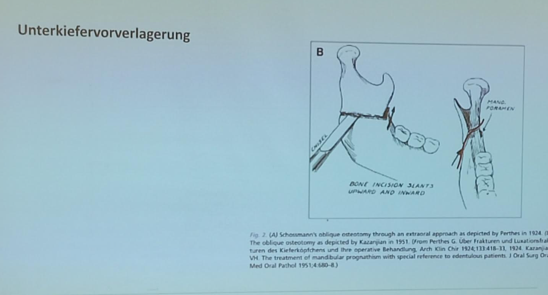 zuerst schreg oberhalb des Nervcanals, Osteotomie zu verlängern sind nach unter gegangen