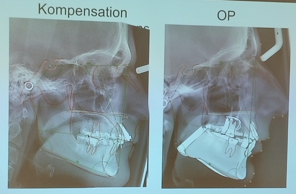 sollte pre-OP dental Kompensieren (Zahn richtig auf den falschen Kiefer stellen)→ Zahn sieht nach diesem Schritt schlechter aus.