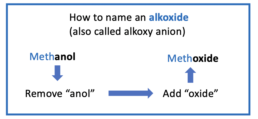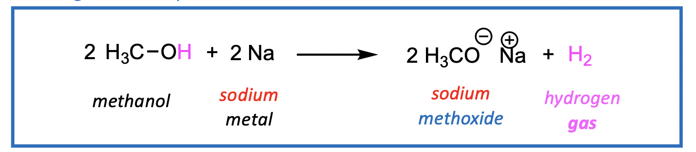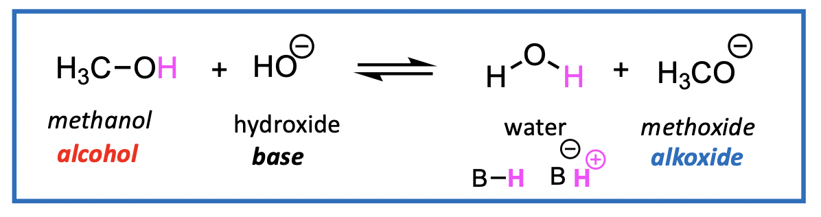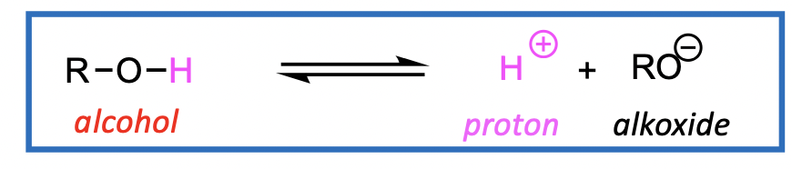 an alkoxide is formed - an alkoxide is the conjugate base (CB) of an ROH