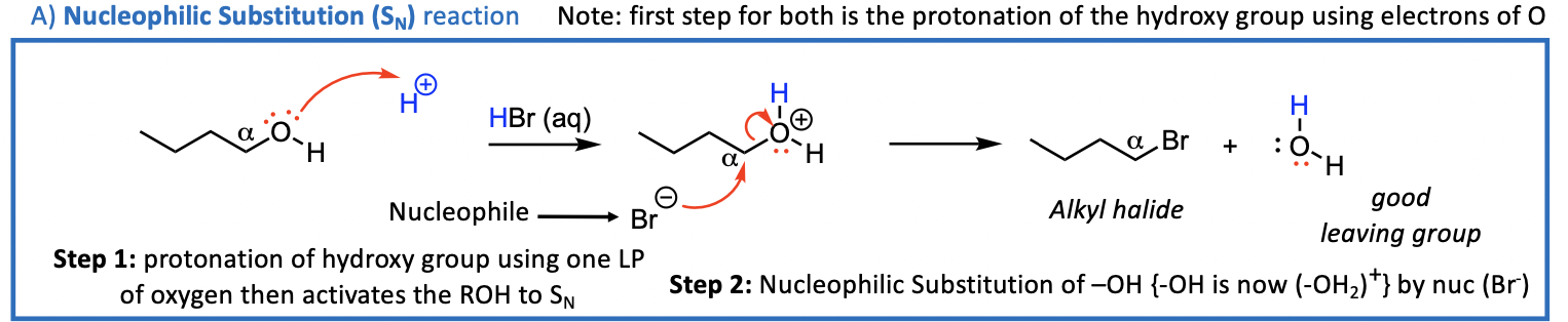 We now consider the reactions that can occur at the C-O bond of ROH Acid Conditions Needed