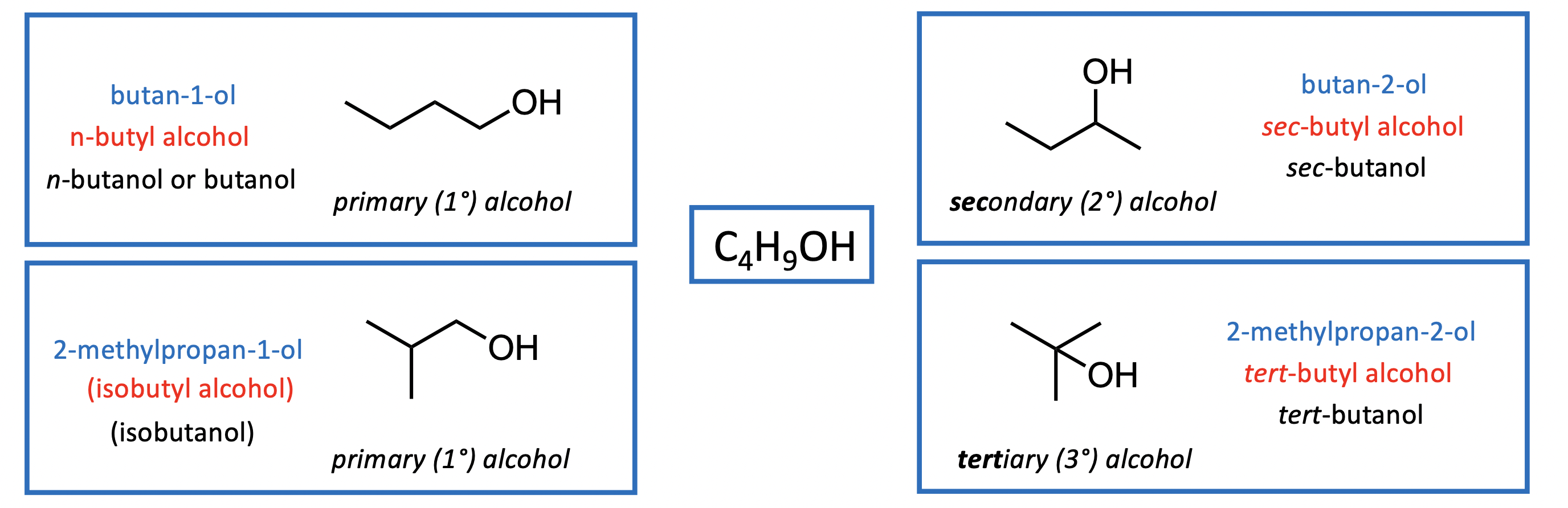 Common Names: Use “alkyl” group + “alcohol”