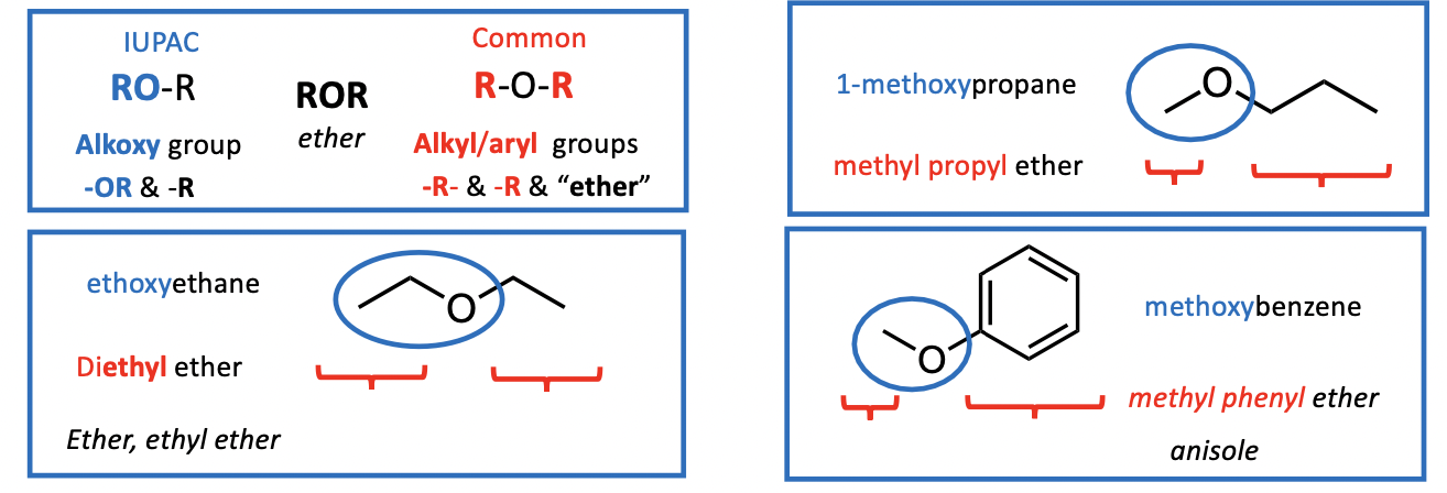Common Names: write “alkyl” groups in alphabetical order then add “ether” (R-O-R)Additional : historical names also apply