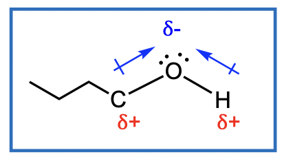 The oxygen of the alcohol has lone pairs of electrons
