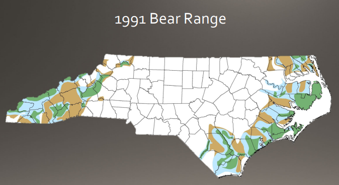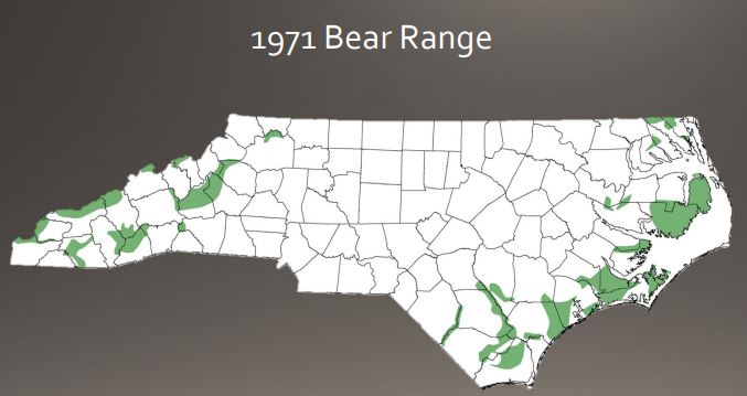 By the middle part of the 1900s, bears had been extirpated from the piedmont and populations had receded into remote areas of the mountains and coastal plain In a 1975 symposium on endangered species in North Carolina, concern over declining bear populations was indicated by them being declared a “species of special concern
