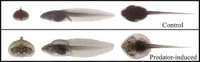 - Tadpoles sensing predator presence become more active, develop a deeper tail to quickly escape, the tail is also larger and often red to encourage predators to strike at the tail (can grow back) vs. the body (fatal)