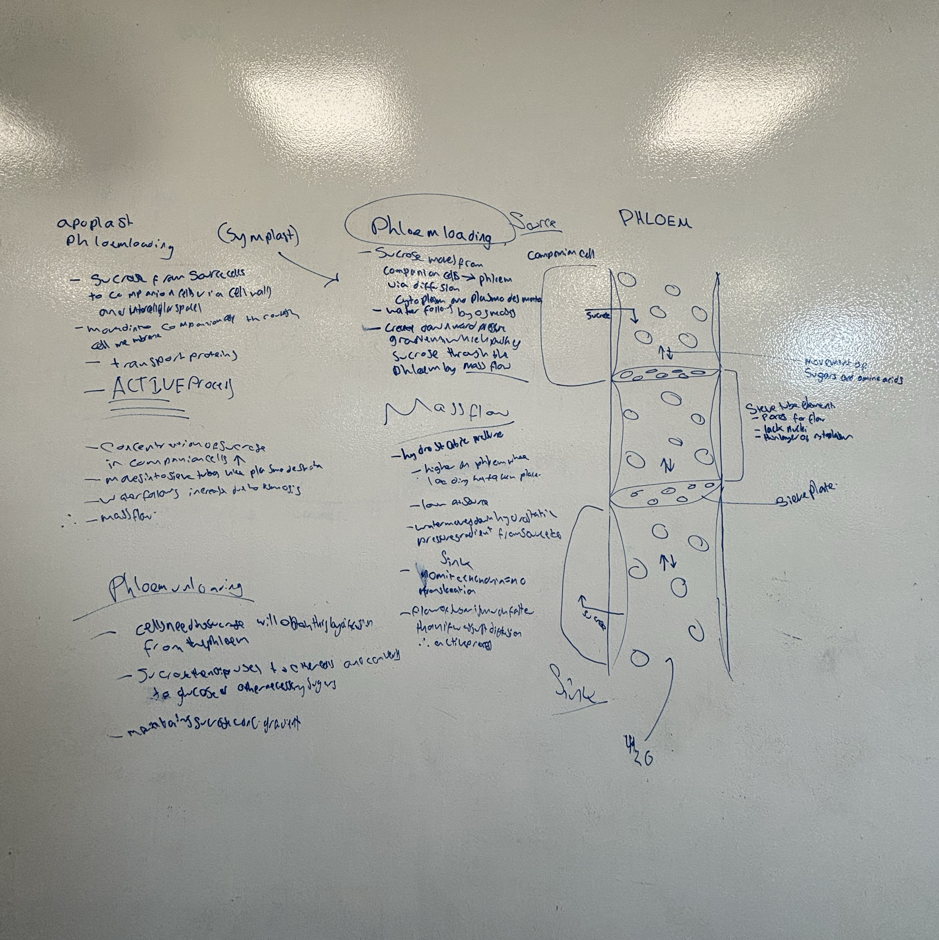 this again creates a pressure of water that moves the sucrose through the phloem by mass flow