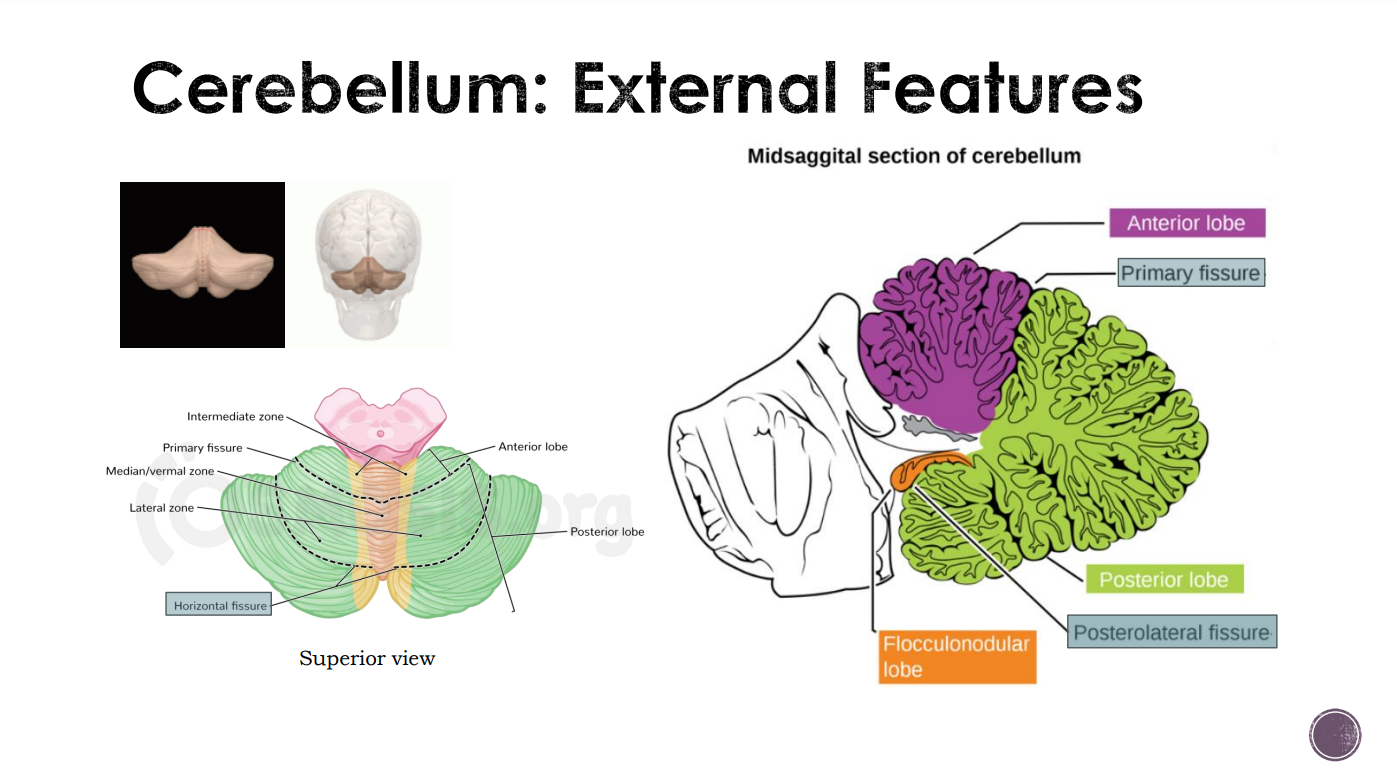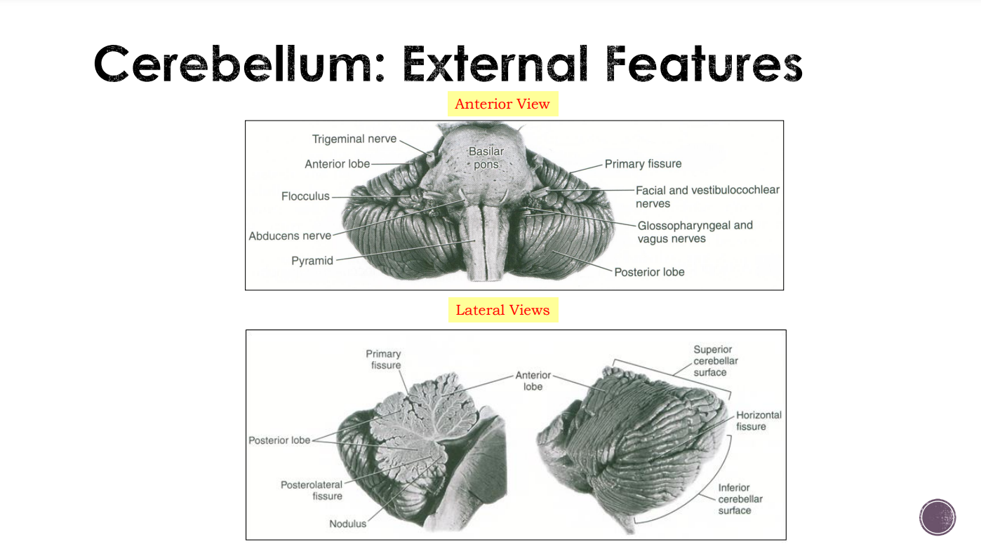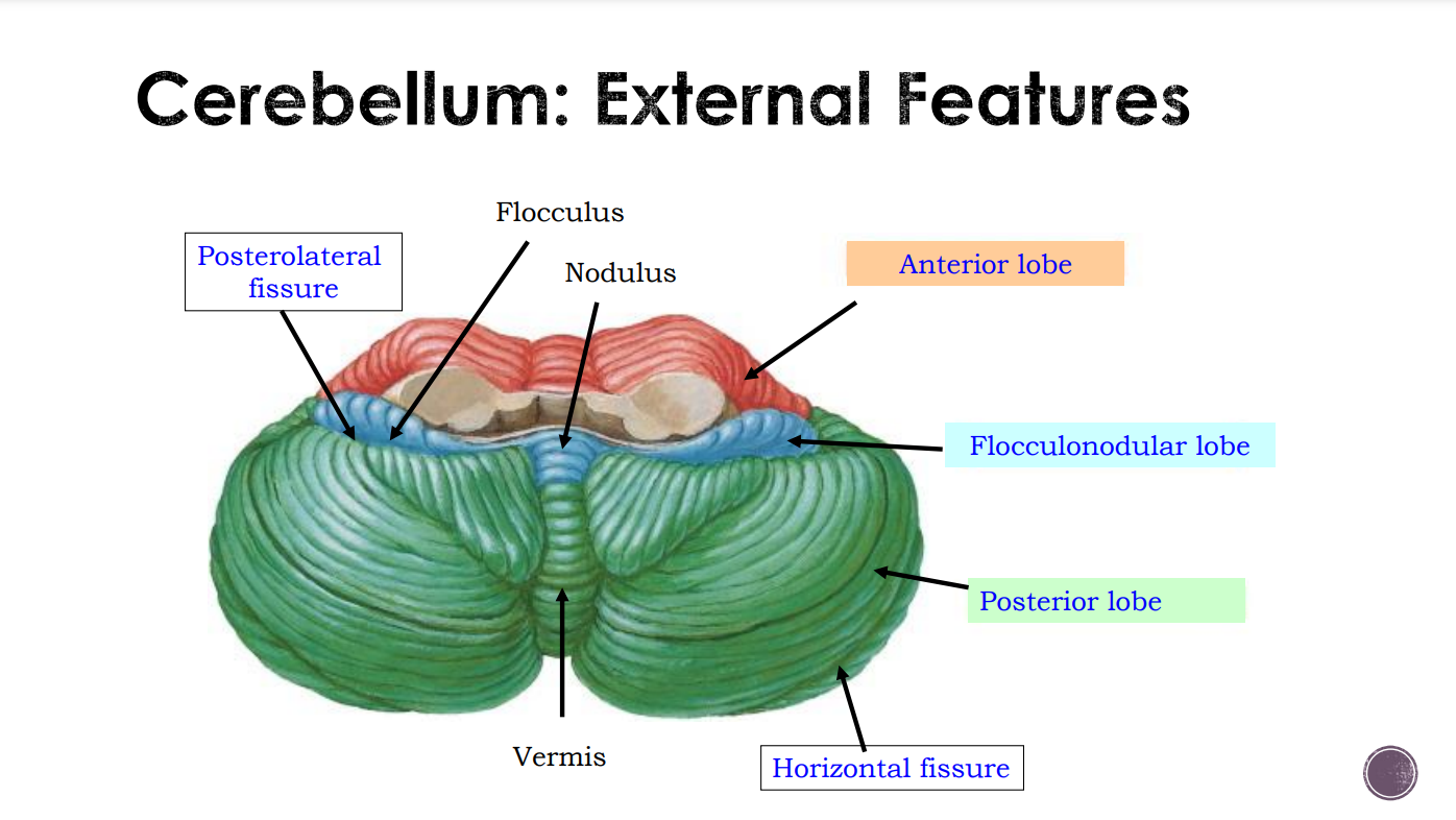 Horizontal Fissure: margin separating the superior and inferior surfaces of the cerebellum.
