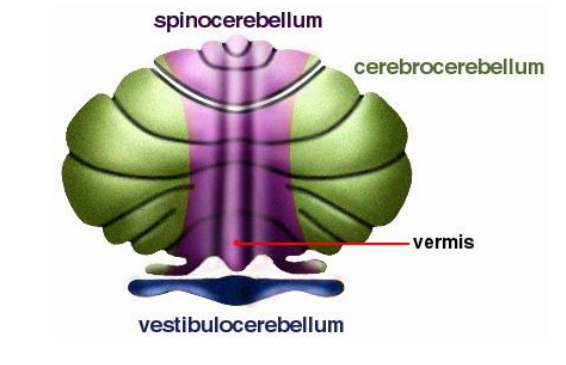 Vestibulocerebellum, spinocerebellum, cerebrocerebellum