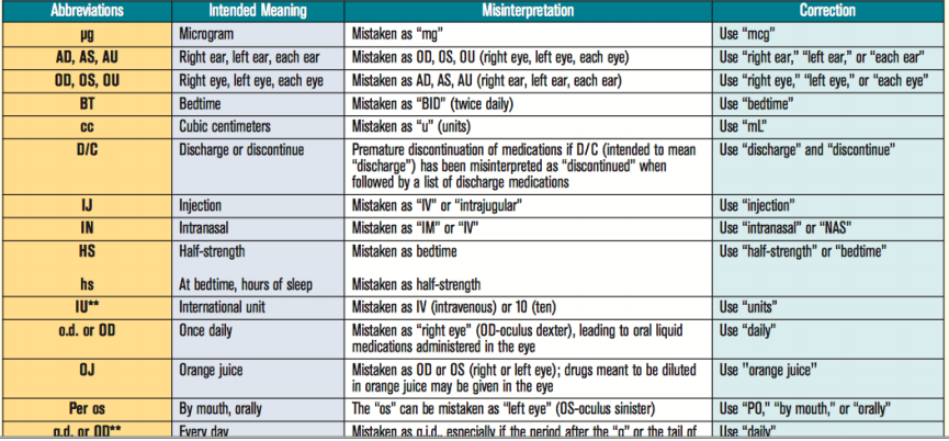 7. “Do Not Abbreviate” List (ISMP & TJC)