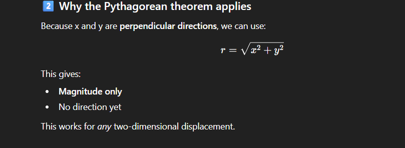 1⃣ Displacement as a vector (what x, y, and r mean)