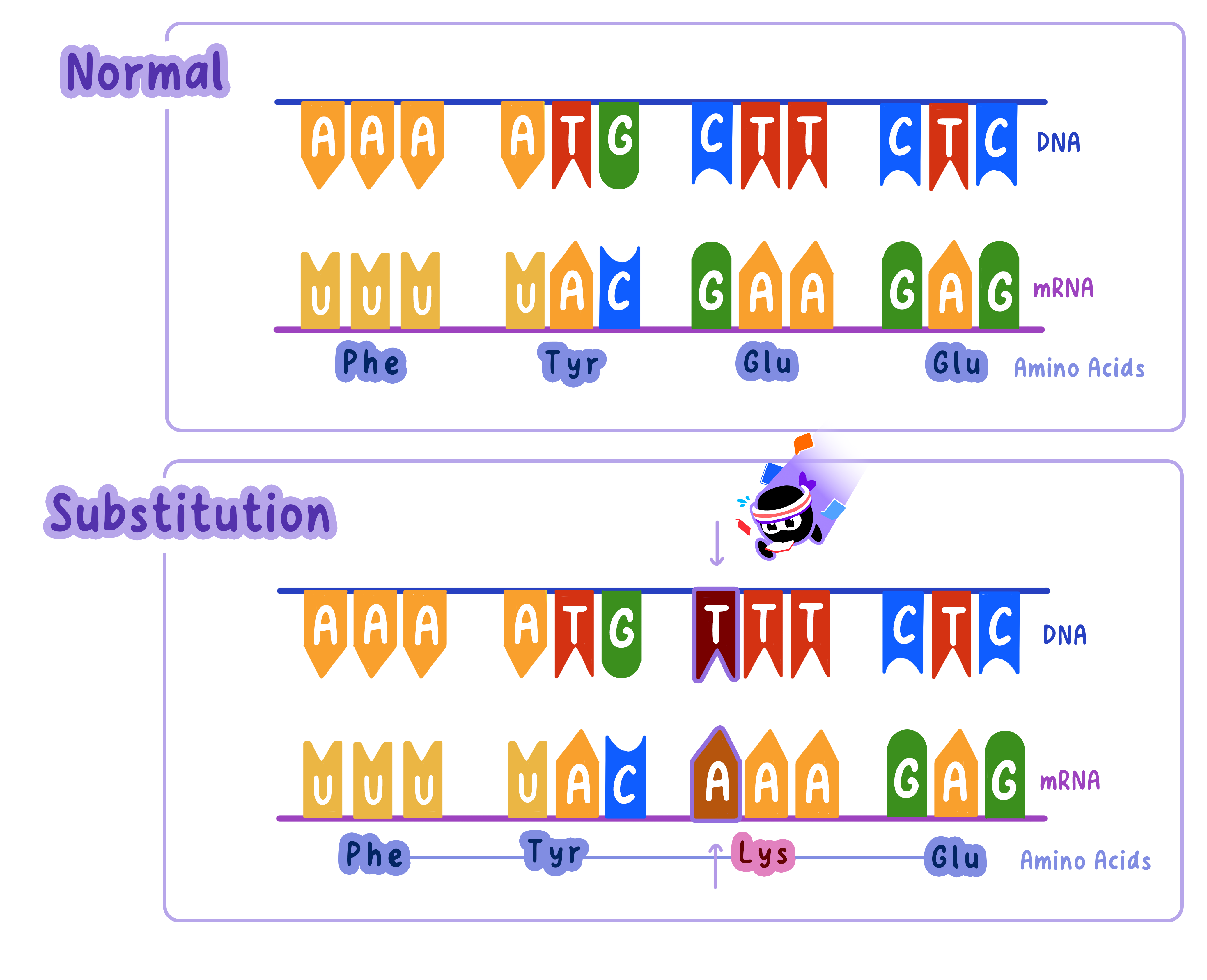 Base substitutions are a key source of genetic variation, with effects ranging from silent to severe.