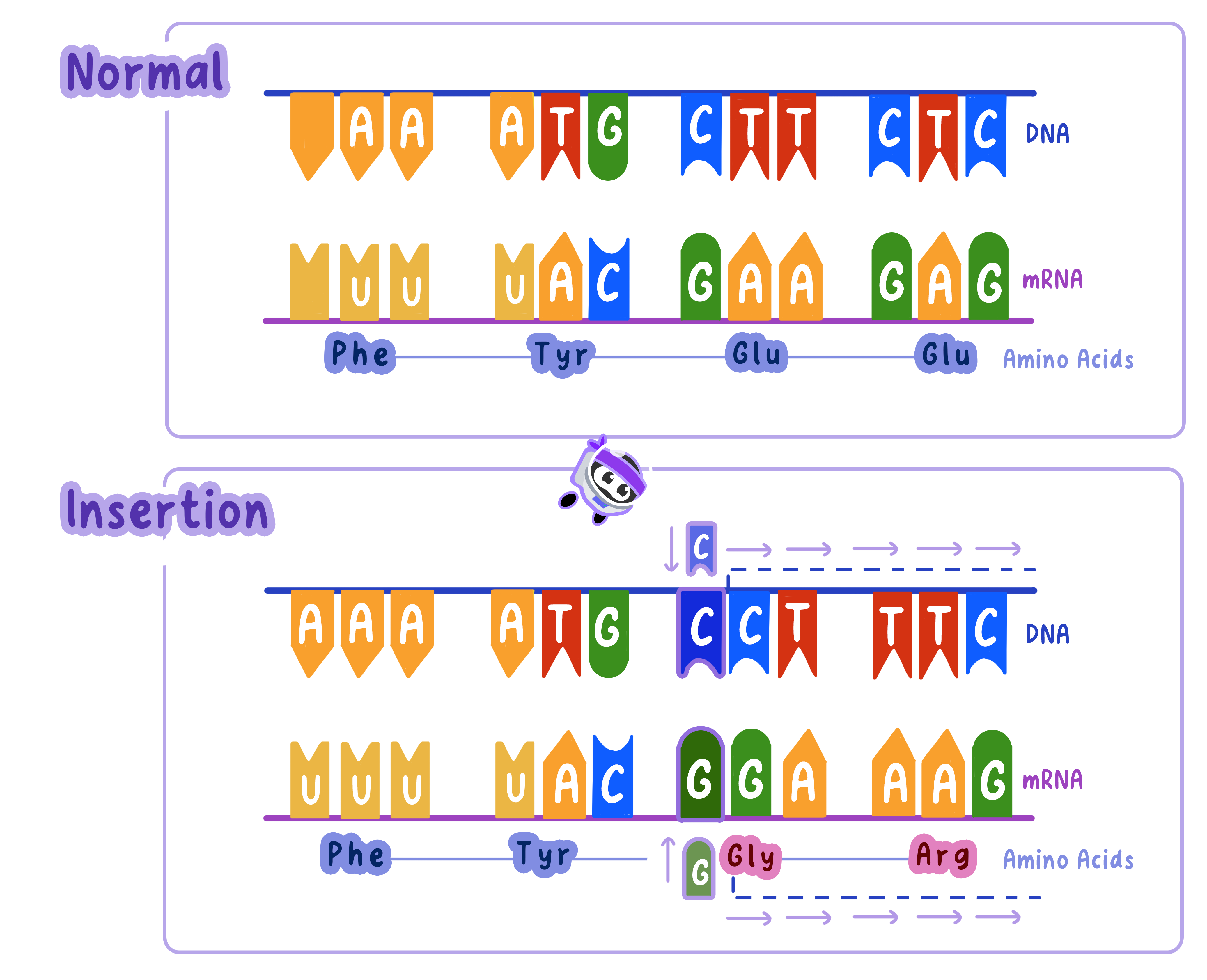 In insertion mutations, one or more nucleotides are added to the DNA sequence.