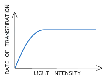 increasing light intensity causes more stomata to open so the rate of transpiration increases with increasing light intensity