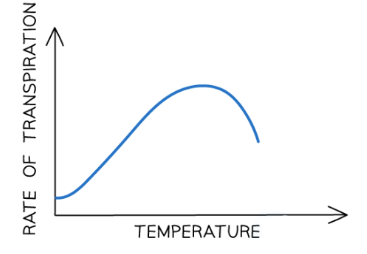 high temperatures cause the stomata to close so the transpiration rate decreases