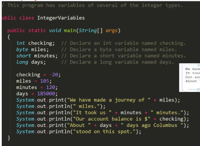 \ Sends information to the standard output by using a java class stored in the standard Java library