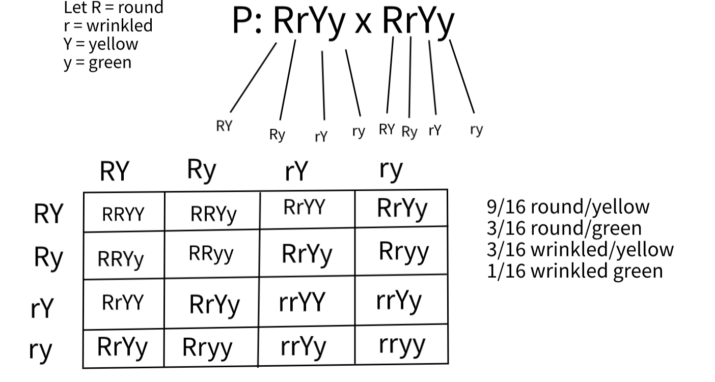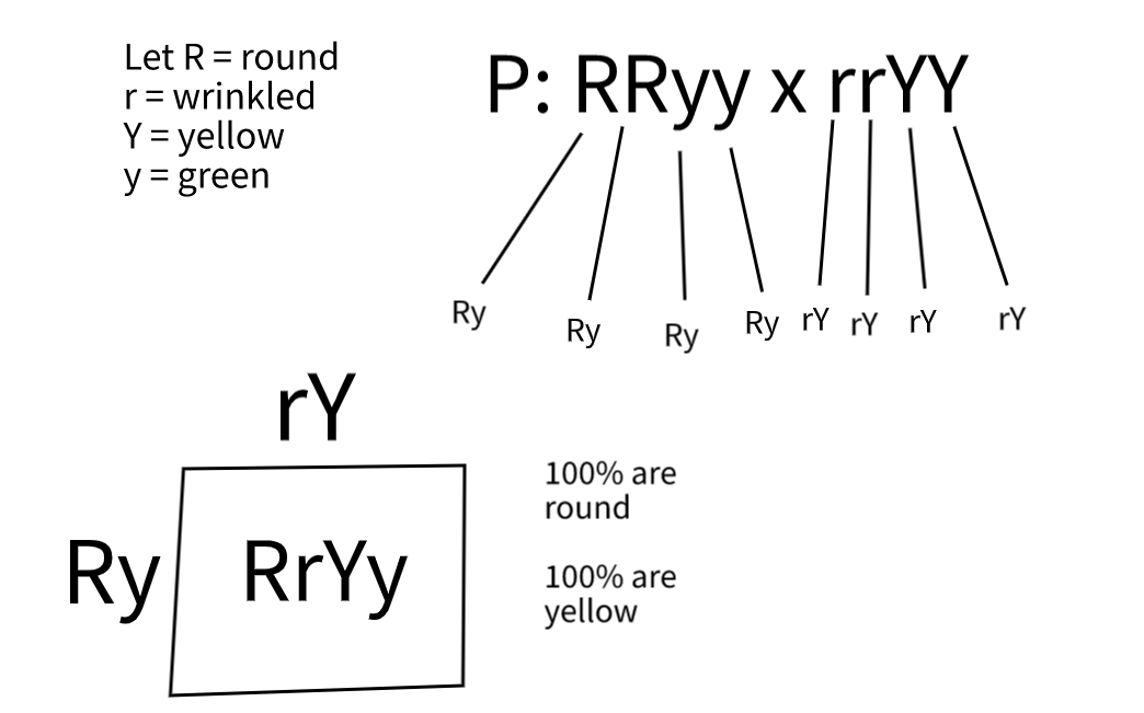- Ex. Round yellow seeds x wrinkled green seeds