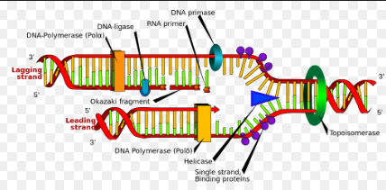 Helicase: unzips DNA strands by breaking hydrogen bonds between nitrogenous bases