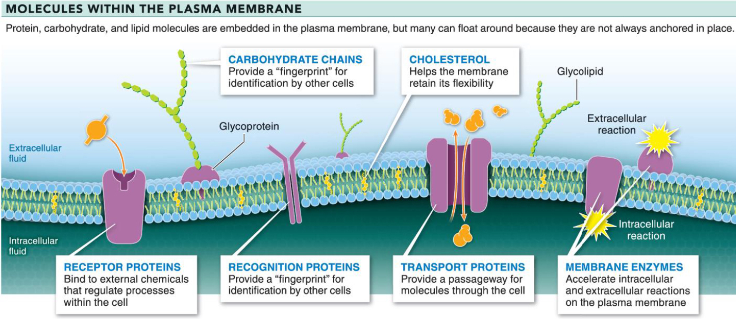 Proteins and other molecules embedded in the plasma membrane help it perform its functions