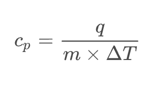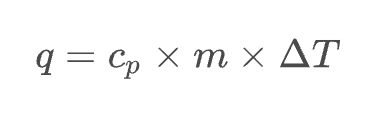 - heat (J) = specific heat (J/g°C) × mass (g) × temp. change (°C)