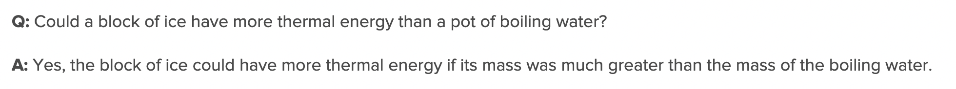 - However, the same tub has higher thermal energy than the same drop of water because its mass is larger