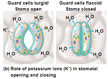 (True) - Changes in turgor pressure result primarily from the reversible uptake and loss of potassium ions by the guard cells.