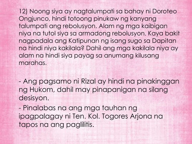 - Talumpati ni Enrique de Alcocer sa paglilitis ni Rizal