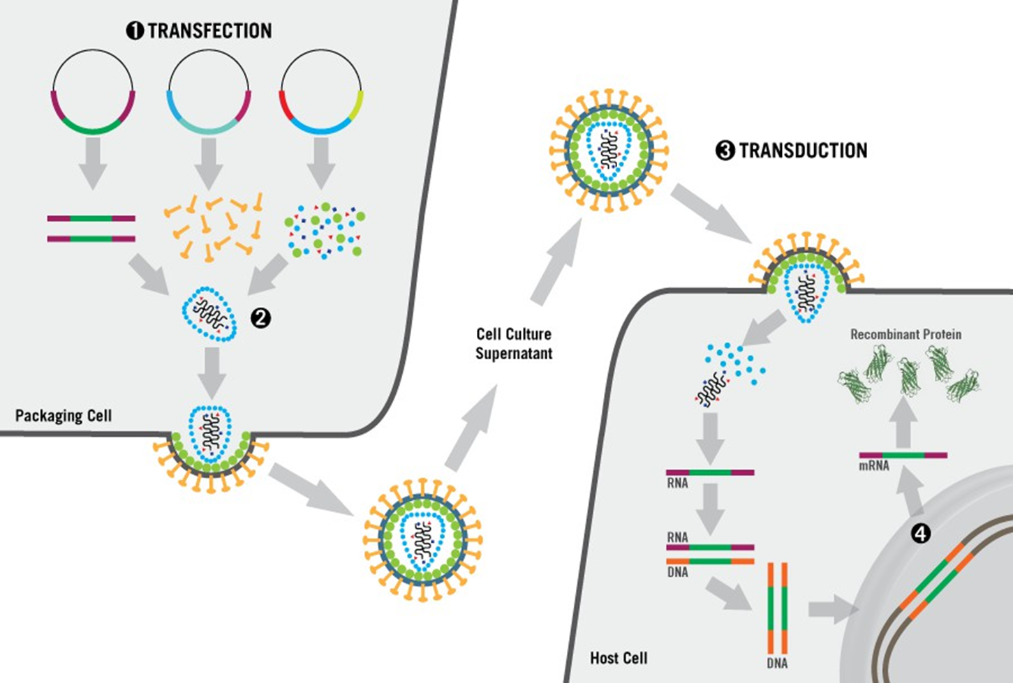 opm; In de meeste gevallen blijft het plasmide "los" in het cytoplasma, bij prokaryoten, of los in de kern, bij eukaryoten, zweven. Het wordt niet vastgeplakt aan de menselijke chromosomen. Na verloop van tijd, als de cel deelt, gaat de plasmide vaak verloren. Dit noemen we transiënte (tijdelijke) expressie. MAAR uitzonderlijk bij lentivirussen wordt het gen wél in het chromosoom geplakt. Elke keer als die cel deelt, wordt dat nieuwe stukje netjes mee gekopieerd als onderdeel van het eigen genoom.