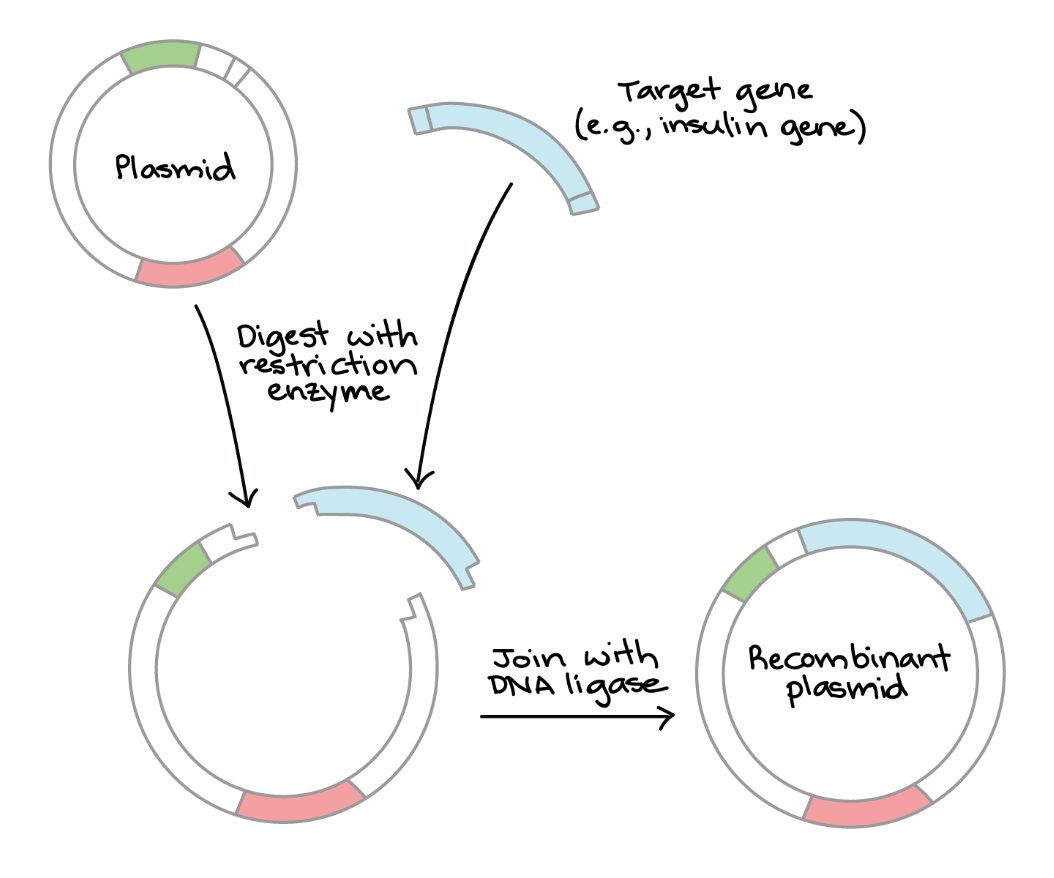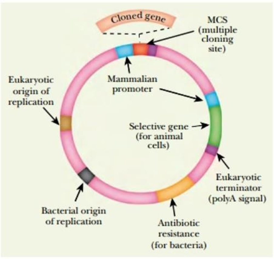 opm*; het gebruikte DNA is niet rechtstreeks, in die vorm, terug te vinden in de cellen, het DNA wordt op een specifieke manier bekomen; DNA → mRNA → cDNA door reverse transcriptase opdat het klein genoeg zou zijn, én bovendien ook minder complex (bacteriën “begrijpen” intronen niet) (zie ook verder)