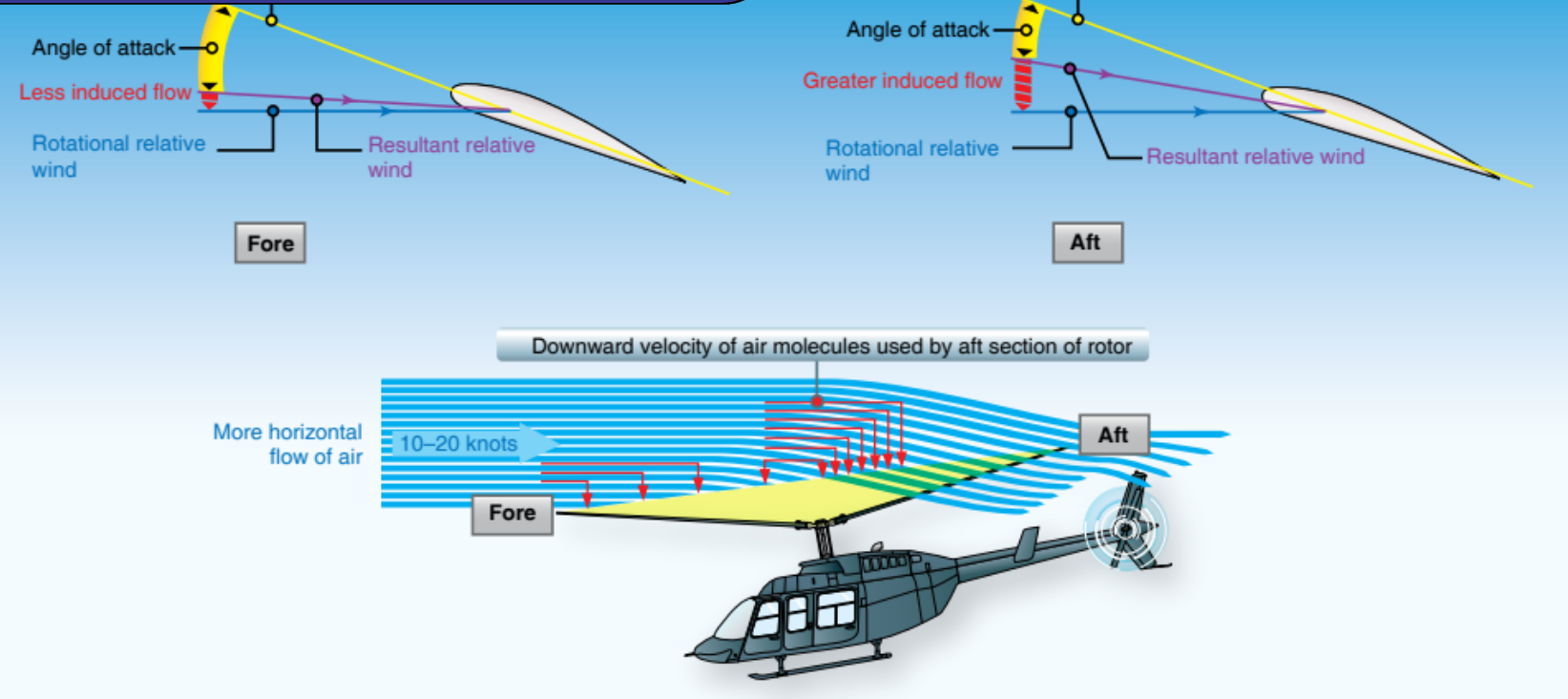 It is the differential (unequal) lift between advancing and retreating halves of the rotor disk caused by the different wind flow velocity across each half. This difference in lift would cause the helicopter to be uncontrollable in any situation other than hovering in a calm wind.