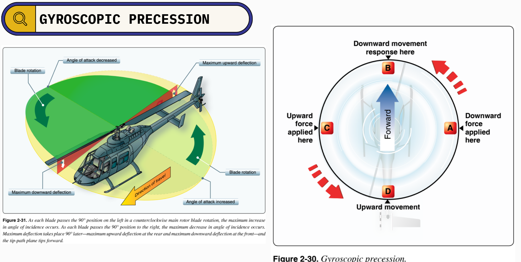 Rolling Tendency - with a main rotor system in the counterclockwise direction, counteracting this causes the left skid to hang lower while hovering. The opposite is true when viewed from above, for rotor systems turning clockwise.