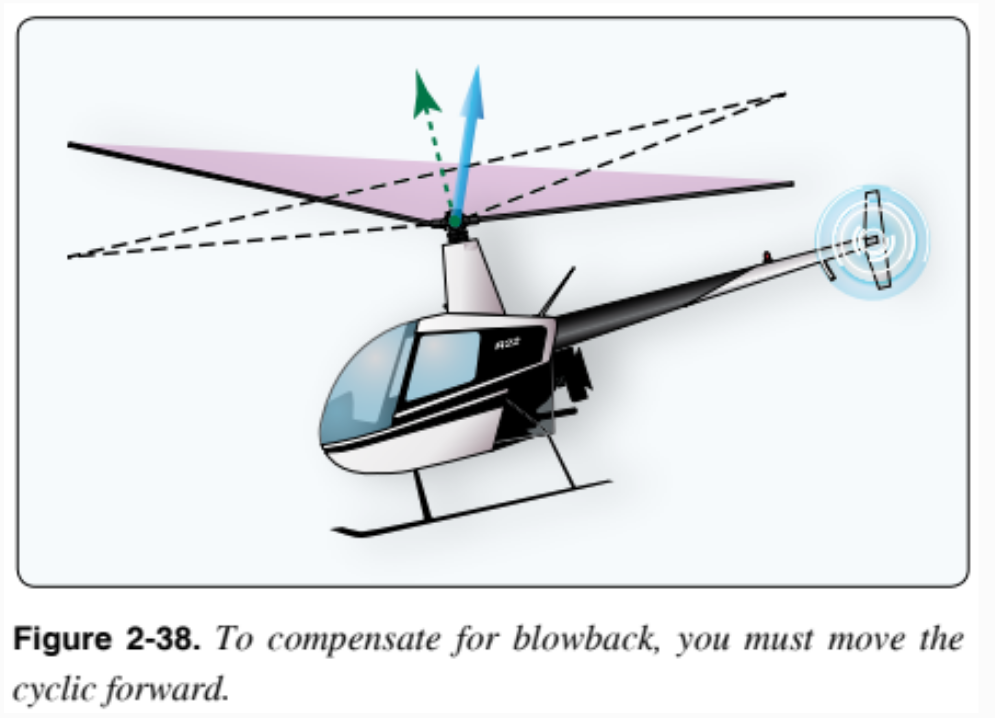 To correct for this tendency, the pilot must continuously move the cyclic forward as velocity of the helicopter increases until the takeoff is complete, and the helicopter has transitioned into forward flight.
