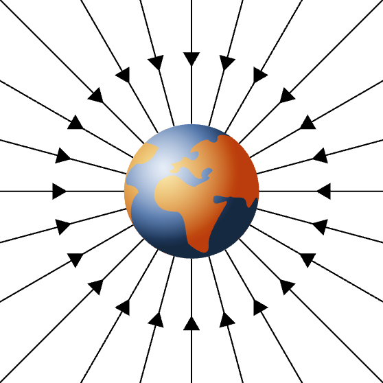 arrows closer at the surface than lines further away from the earth = gravitational field is stronger at the surface