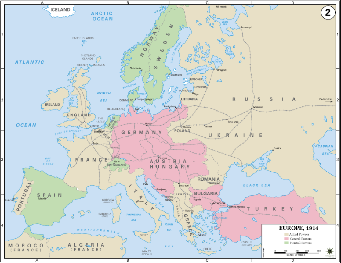 Central Powers - Austria-Hungary (full of Germans, Hungarians, and Catholics), German Empire, Ottoman Empire (Turkey, Muslim)