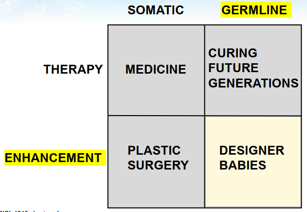problem with modifying the germline is that this other line might not hold, and that's the line between therapy and enhancement
