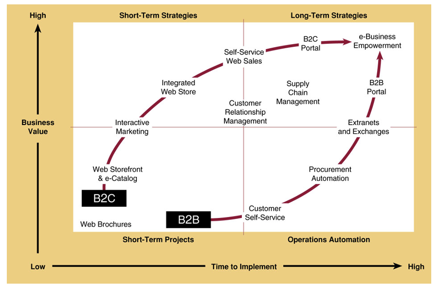 The entire online process of developing, marketing, selling, delivering, servicing, and paying for products and services transacted on networked global marketplaces; more than just buying and selling online